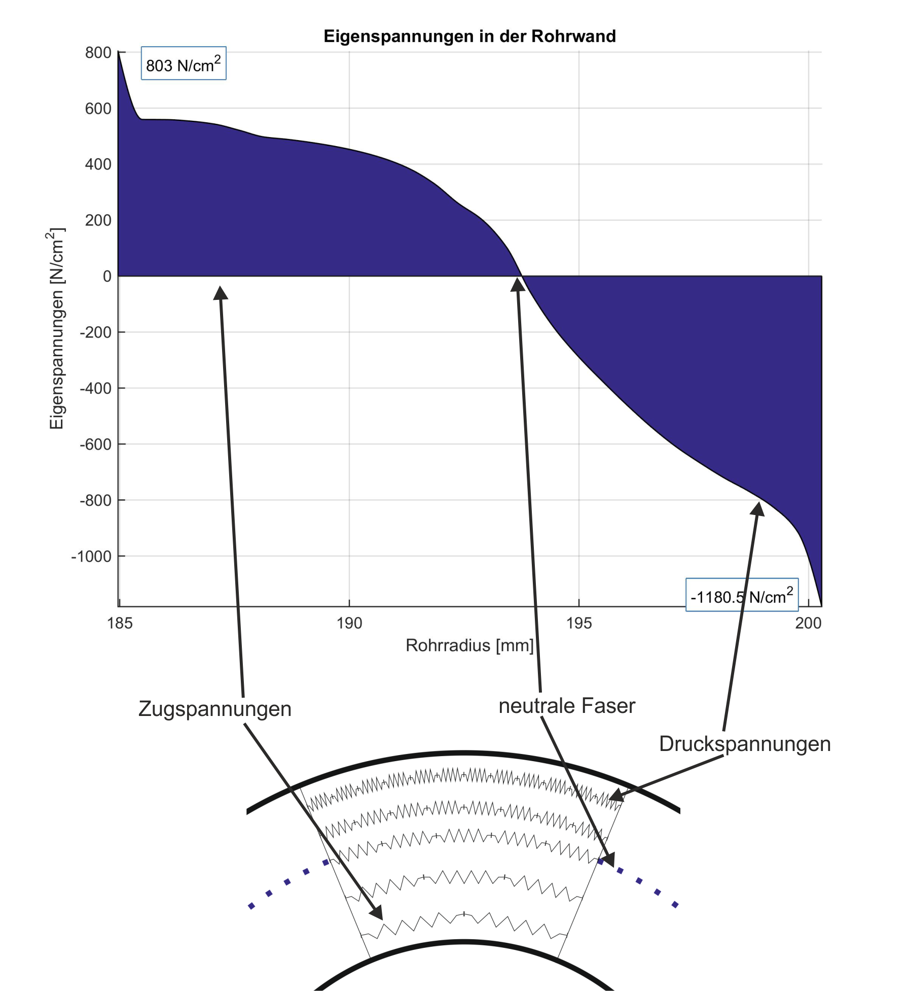 - Annahme eines linearen Eigenspannungsverlaufs innerhalb der Rohrwand