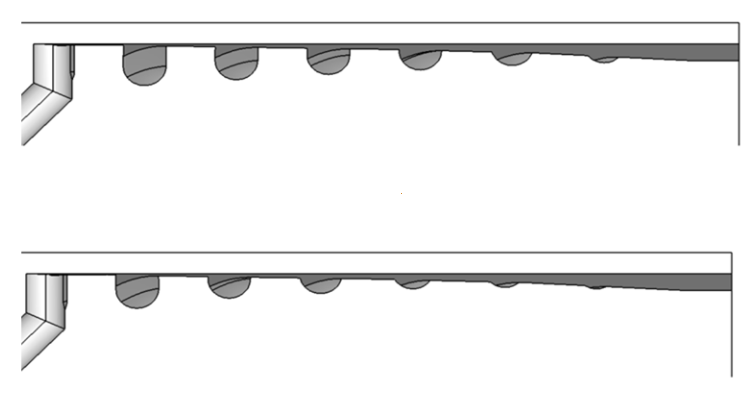 “Eine Erhöhung der Kanalanfangstiefe führt zu einer gleichmäßigeren Verteilwirkung und einer Verringerung des Druckverlustes, kann aber negativen Einfluss auf die Spülbarkeit des Werkzeuges haben.”
