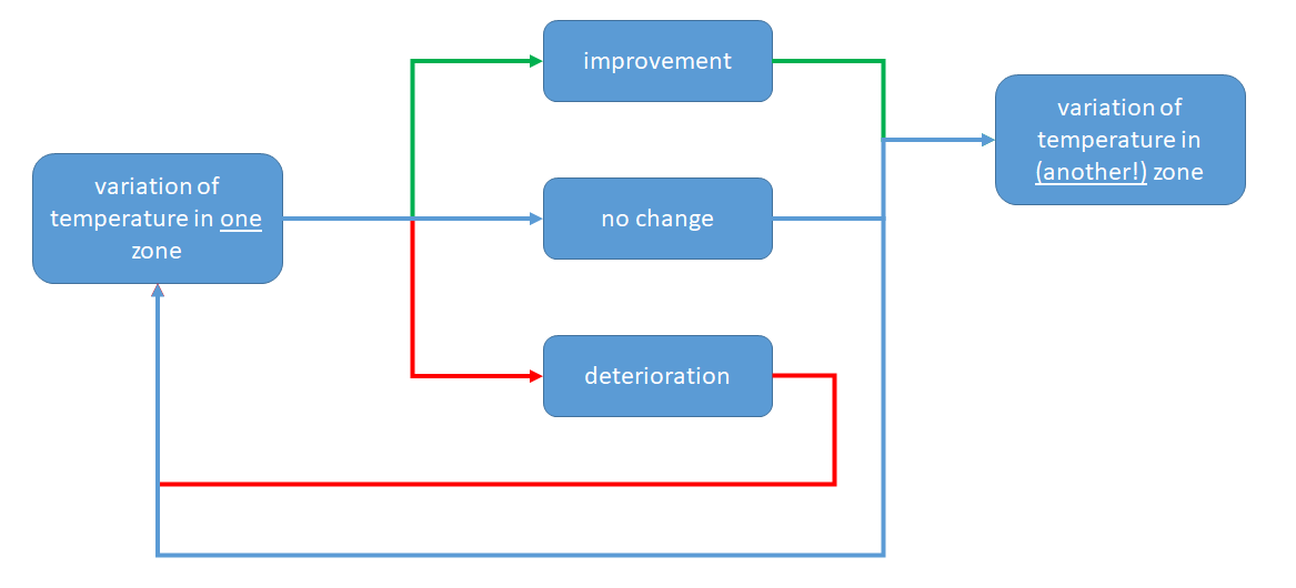Due to the complexity of a DOE, manual process optimization in practice therefore usually takes place in the form that individual zones (only one zone at a time) are reparameterized with regard to their temperature in small steps (e.g. +/- 5°C). After the system has settled and returned to a stable operating state, the process quality is evaluated. In the event of an improvement, the change is accepted if no improvement has occurred, either the original parameterization is reset and another zone is varied or the change is retained and yet another zone is adapted.