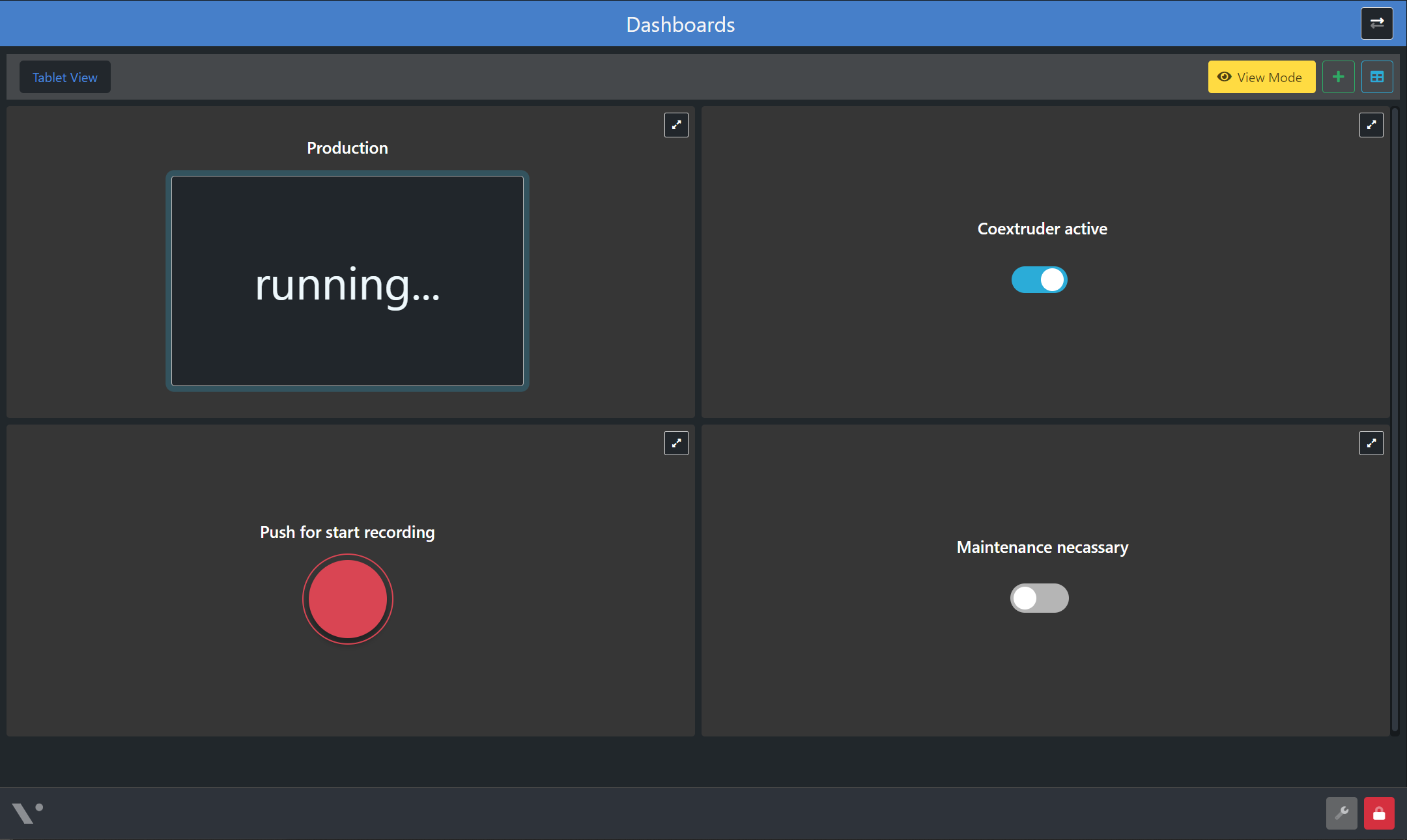 Der zuletzt genannte Punkt lässt sich dabei für jede beliebige Situation anpassen. Das Assistenzsystem bietet die Funktion, dass in frei konfigurierbaren Dashboards unterschiedliche und individuelle Schaltflächen konfiguriert werden können, so dass jede erdenkliche Situation in der Produktion vom Mitarbeiter mit einem einfachen Tastendruck (zum Beispiel auf einem Tablet PC an der Linie) erfasst werden kann.