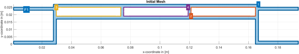 In the case of hollow chamber profiles in particular, the cooling and thus also the shrinkage cannot be implemented homogeneously at every point in the process. As a result, individual areas in the profile have to be considered differently in the design. The analysis of the shrinkage distribution at the outlet of the second calibration shown in the following figure clearly shows these inhomogeneities. In the area of the free webs in the edge areas, there is only a shrinkage of approx. 0.34% compared to the nominal size, in contrast to this, the inner webs in the hollow chambers shrink by approx. 7.5% in area and 3.7% in wall thickness. The circumferential contour shrinks by approx. 1.4% in area and 0.65% in wall thickness.